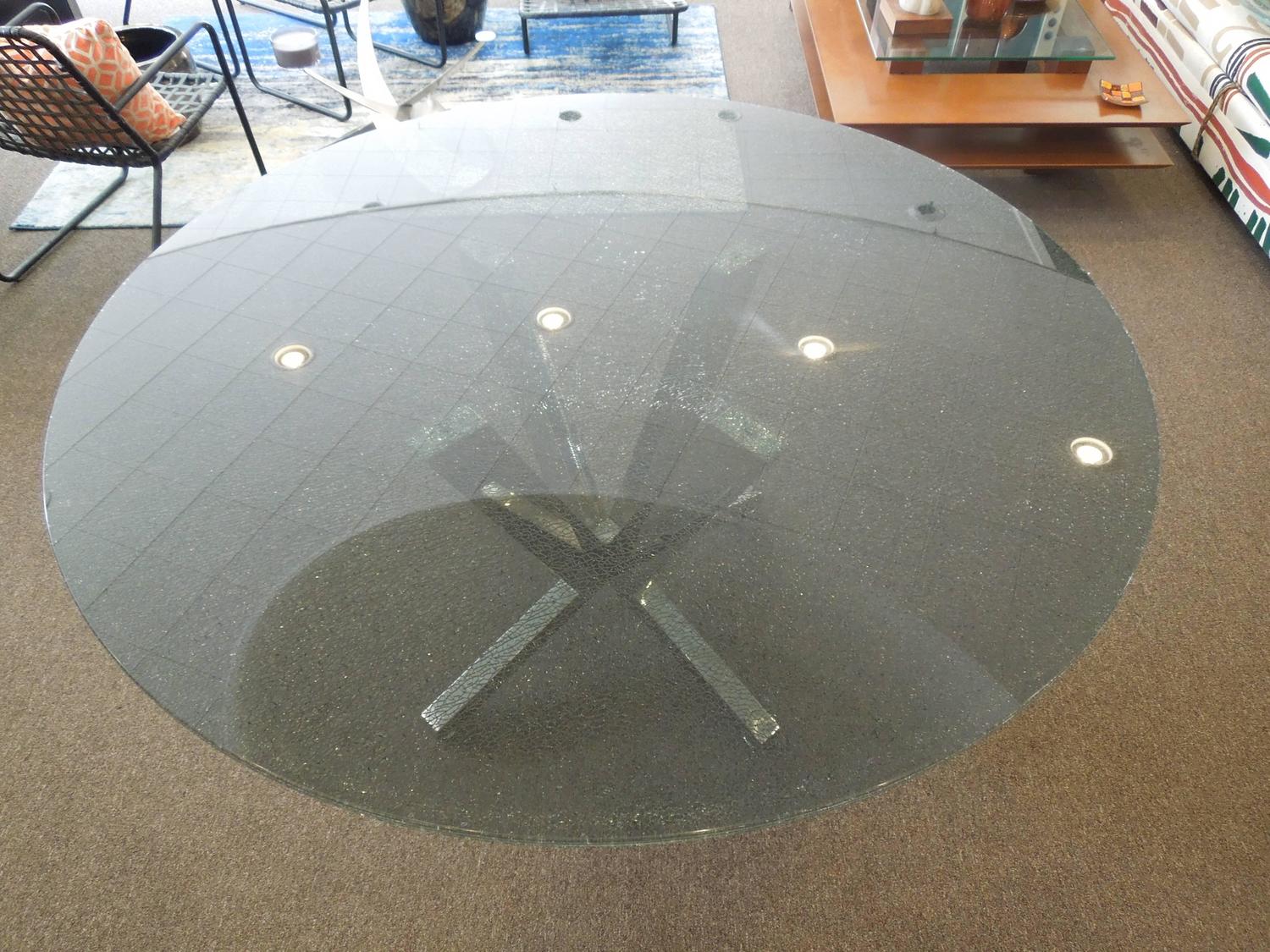 The tempering process makes glass panel shockproof. If you're looking for guidance on table sizes, have a look at our dining room table size guide here. Also has matching coffee and end table. Category vintage 1970s italian dining room tables. There's a reason why the shattered glass table tops and crackle glass dining tables are incredibly popular and trendy. Category vintage 1980s colombian modern dining room tables. The table top is a large 60 deep by 38 wide offering plenty of space for all your table accompaniments. Target / home / crackle glass table lamps. Check out how a cracked glass table top transforms kitchens and breakfast nooks. Clear beveled glass top captures and reflects light in a unique and pleasant way base skillfully crafted from hardwearing tubular metal features:. Its table top is made from tempered laminated crackle glass and its pedestal base repeats the circle shape of the top. Antique finish gives a subtle aged look to your dining room construction and material: Below is a look at a recently installed glass countertop.
